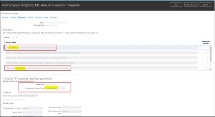 You can now include multiple competency sections in performance documents to allow different groups of competencies to be evaluated separately.