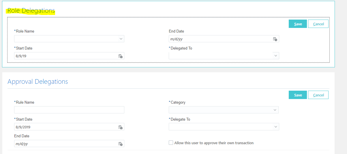 Previously, a user could only delegate the roles allowed for delegation himself. With this update, a user with the Human Resource Specialist job role can use the Manage User Account page to delegate roles that are allowed for delegation on behalf of another selected user. The proxy user can see all delegations and who made them on their user account page, but they canβt edit or delete delegations performed by others.