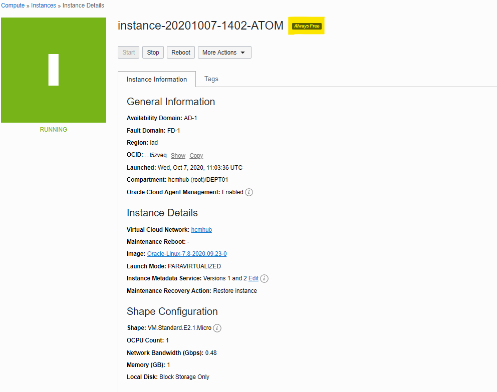 As you can see I use a free compute instance with a minimal shape but it’s quite enough to run a simple python code that implements atom feeds reader and invokes a notification REST API service to publish messages.