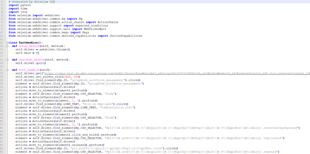 Non-production environments: First Friday of your Quarterly Update month. The exception is the Middle East, where the update is applied on Thursday. Production environments: Third Friday of your Quarterly Update month. The exception is the Middle East, where the update is applied on Thursday. You can review the Oracle Applications Cloud – Standard Update Policy document here: https://support.oracle.com/epmos/main/downloadattachmentprocessor?attachid=1966109.1%3APOLICYSTND-MAR19&action=inline It means that customers have only 2 weeks’ time slot to test all the processes to make sure there are no issues after an update. This very time and resource-consuming process because the number of transactions to be tested may reach hundreds. It is a real challenge for IT support or shared service departments. But there is a solution that intended to extremely simplify testing of all UI transactions every quarter and it is based on test automation framework.