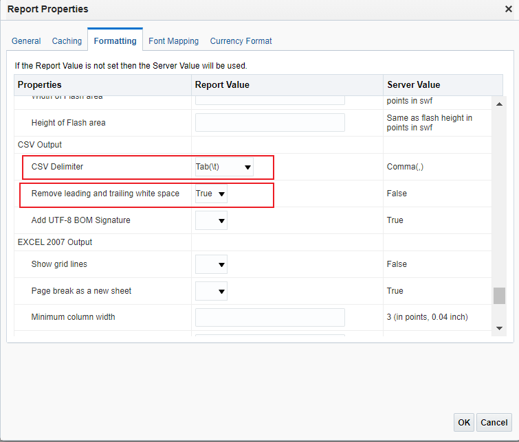 - Open “Report Properties>Formatting(Tab)”
