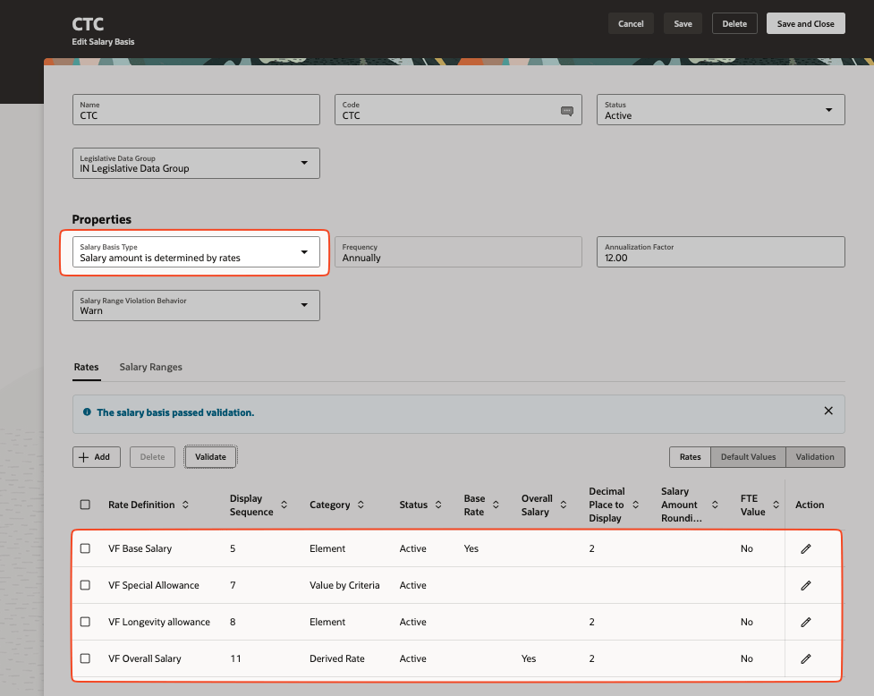 I won’t go into much detail about the rates functionality here, as you can read about it yourself. https://docs.oracle.com/en/cloud/saas/human-resources/24c/faucf/overview-of-rate-definitions.html