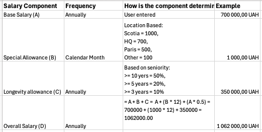 This fact made me go back to the India CTC structure requirements that I was trying to address with a single component feature, but it did not address 100% of the requirements.